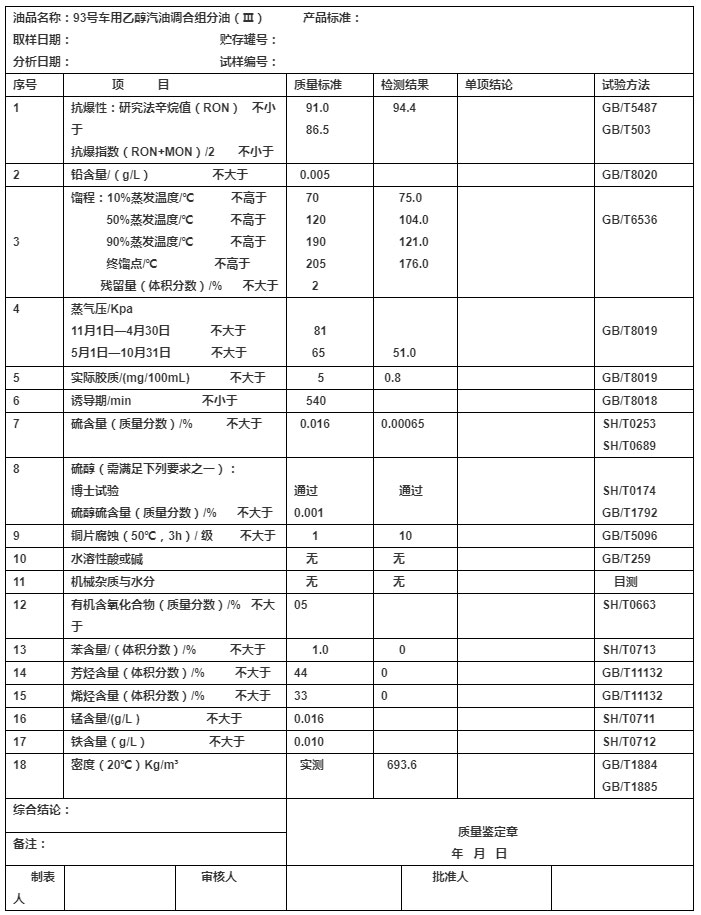 注:1)將試樣注入100mL 玻璃量筒中觀察,應(yīng)當(dāng)透明,沒有懸浮和沉降的機械雜質(zhì)及水分。在有異議是,以GB/T511和GB/T260方法測定結(jié)果為準(zhǔn)。